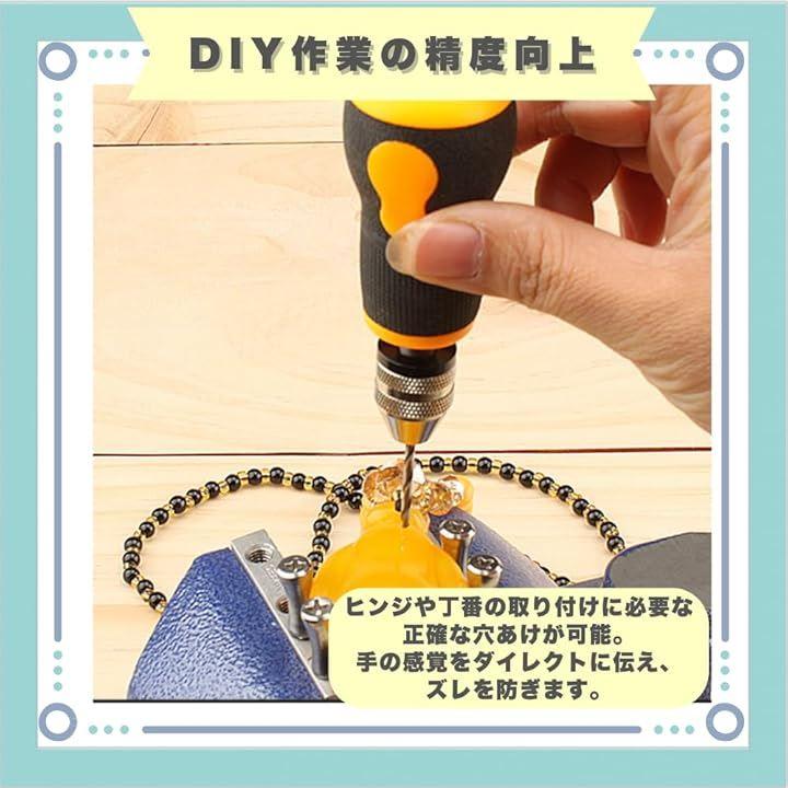 「DIY作業の精度向上」ヒンジや丁番の取り付けに必要な正確な穴あけが可能。
