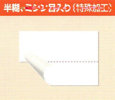 半ノリタイプのラベルは、ラベルの上部にのみ糊がついていて、貼付後に下部をミシン目で切り離すことができます。 贈答品やおみやげ品などの値付けにとても便利なラベルです。