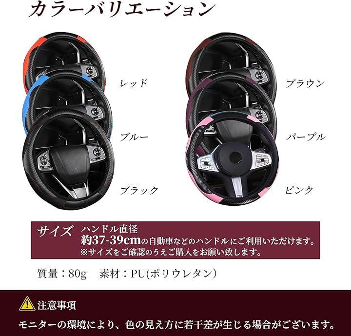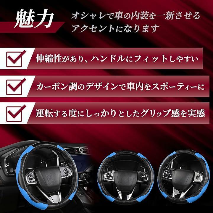 この「ハンドルカバー ステアリングカバー」は、カーボン調のデザインで、伸縮性があり、車内をスポーティーな空間にカスタムすることができます。