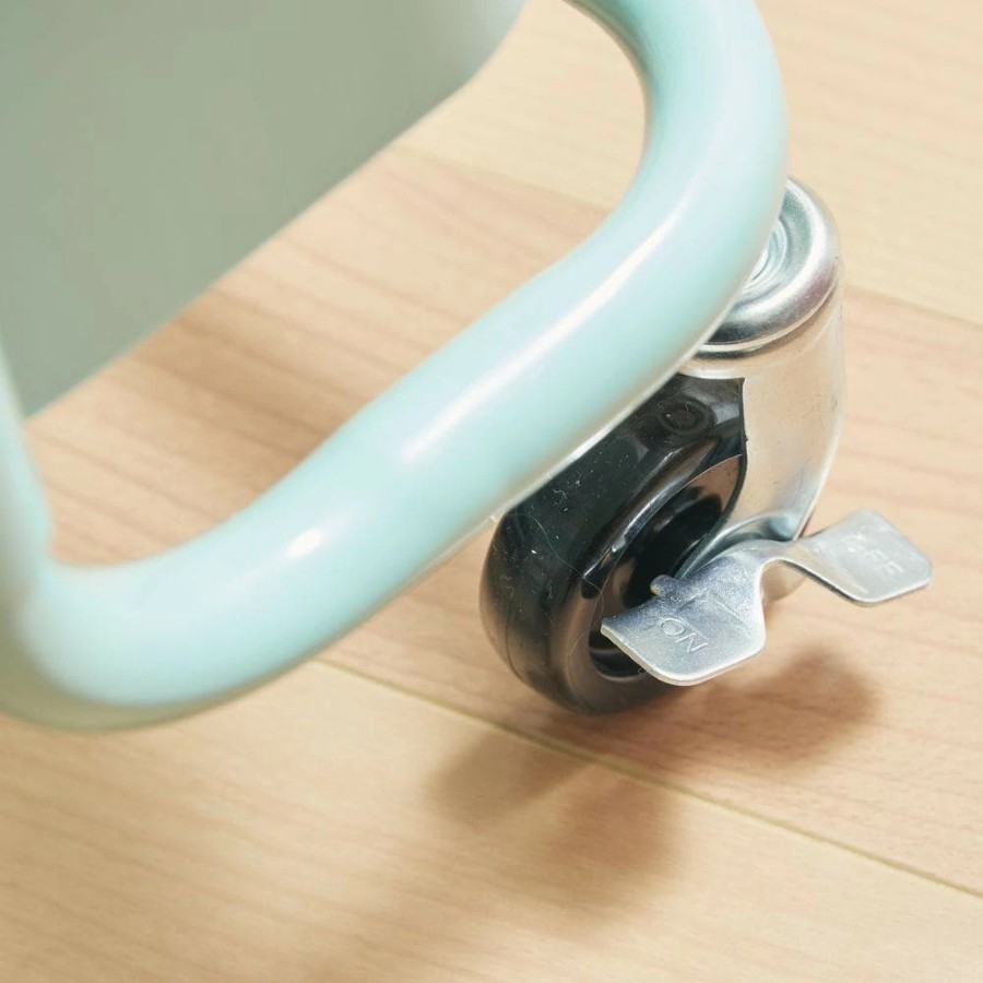 本製品はキャスター付きのため、必要な場所へスムーズに移動可能。調理中の食材や調味料の移動、食事の配膳などにも便利です。ハンドルが付いていることで操作性が高く、方向転換や移動も簡単に行えます。
