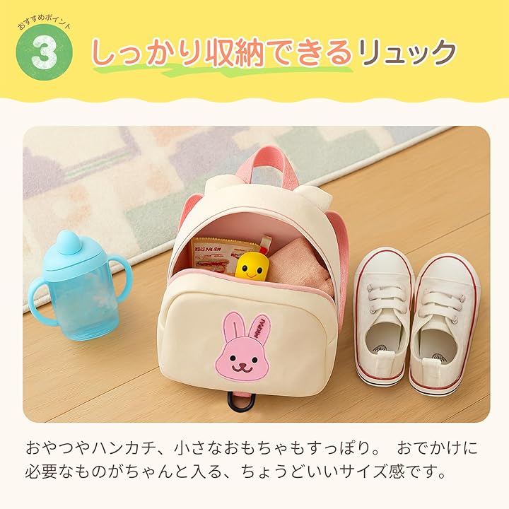 POINT3 しっかり収納できるリュック おやつやハンカチ、小さなおもちゃもすっぽり。