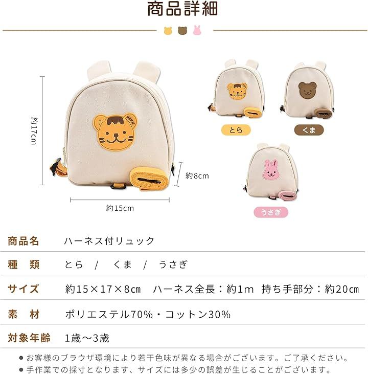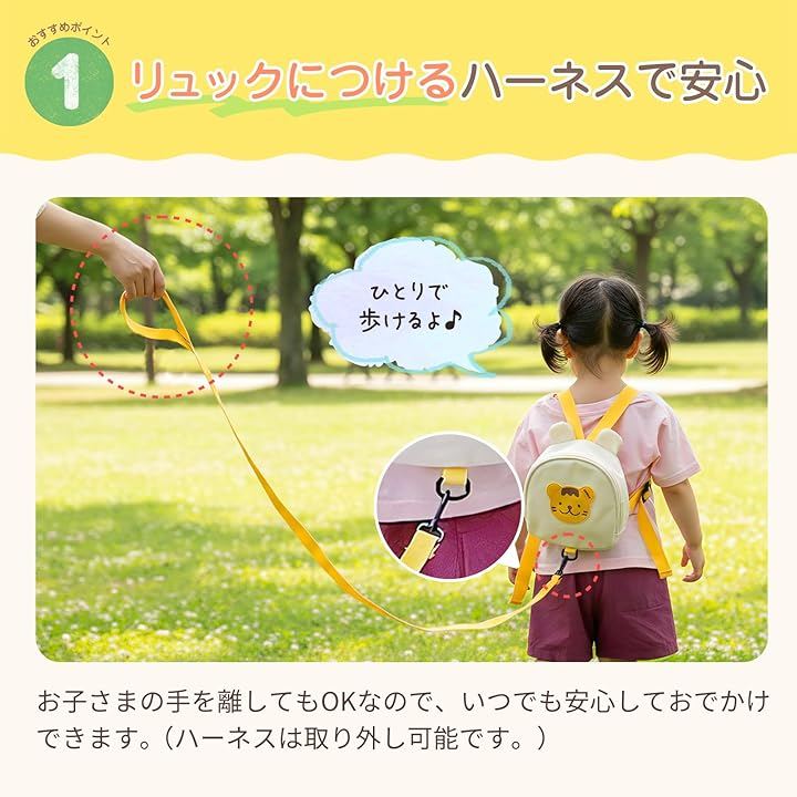 POINT1 リュックにつけるハーネス お子様の手を離してもOKなので、いつでもおでかけできます(ハーネスは取り外し可能です)