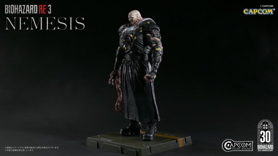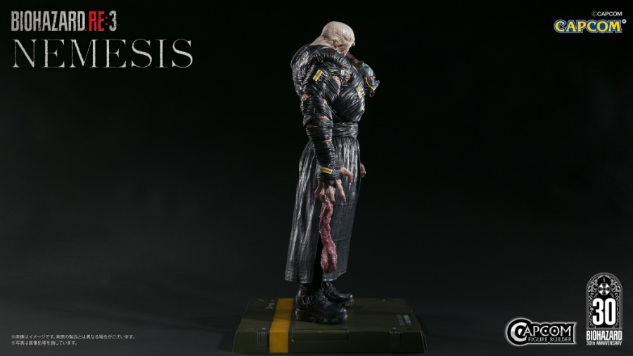 本アイテムには両腕の交換オプションとネメシス輸送筐体の デザインをあしらった台座、さらに30周年を記念して原作の ネメシス頭部へ交換可能なパーツも付属した豪華セット。 特徴的な口元と心臓を模した制御装置は精密な造形と塗装で 存在感ある仕上がりに。全高約43cmに及ぶ力強いシルエット にはクリエイターたちの技巧が凝縮されている。