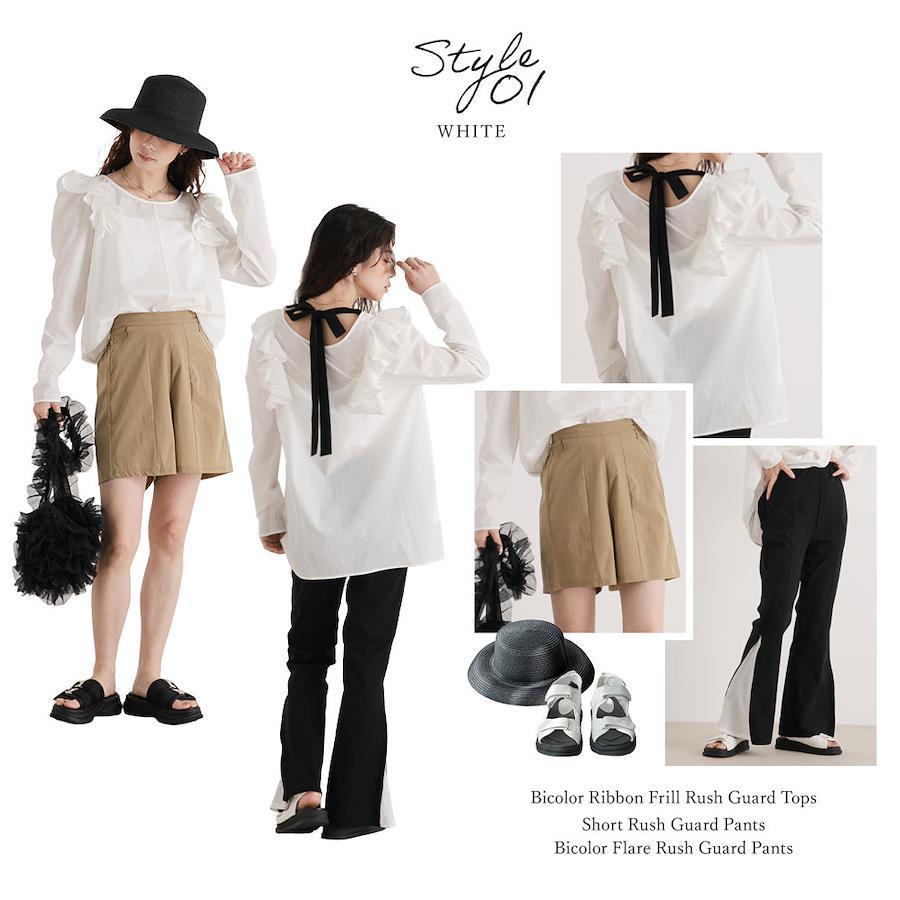 バイカラーリボンがポイントのフリルラッシュガードトップス