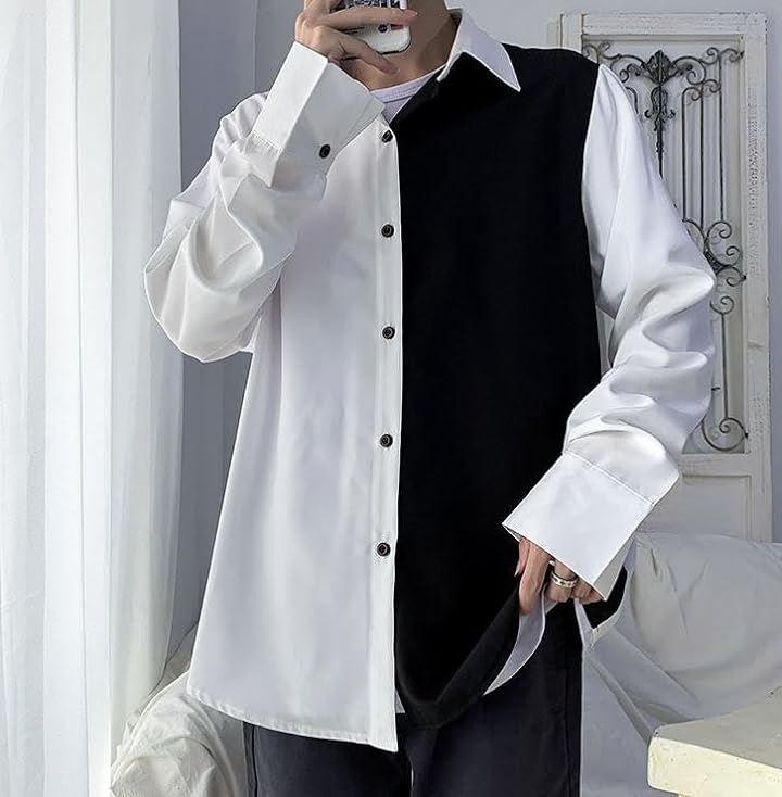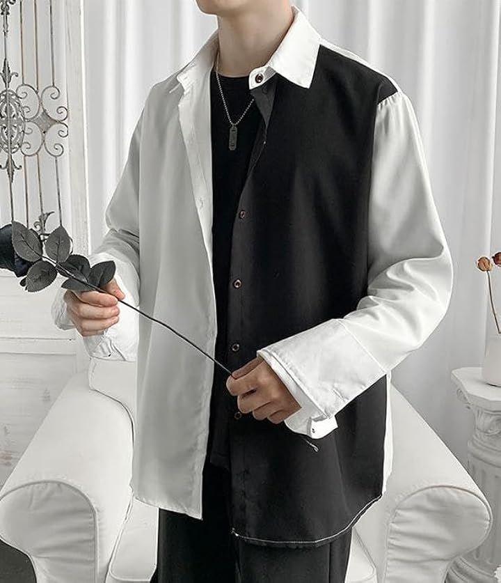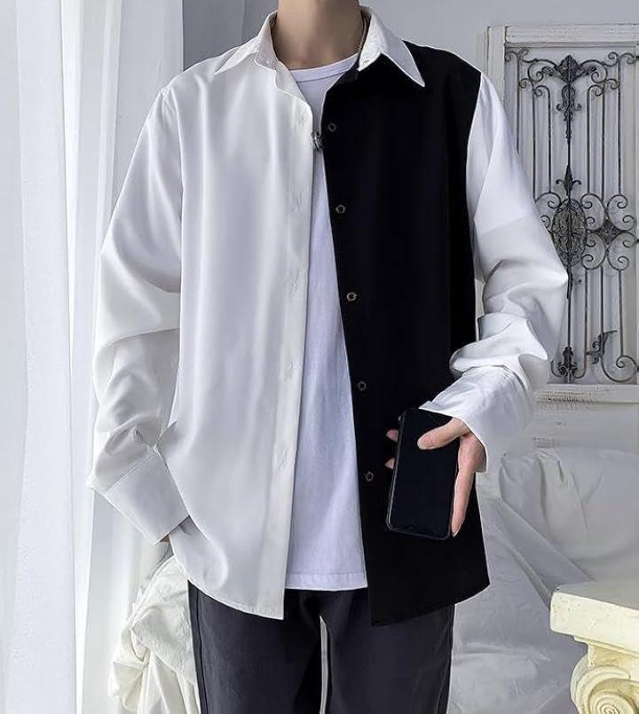 バイカラー シャツ ビジネスカジュアル ポケットなし 襟付き メンズ キレイ ストリート ツートン