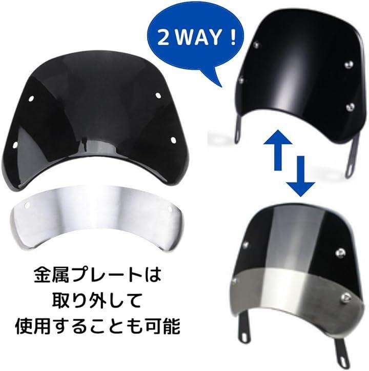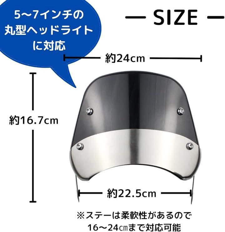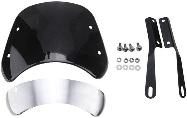 バイク汎用スクリーンねじロック剤付 風防 オートバイ メーターバイザー カウル 風除け ユニバーサルフィット 取り付け簡単 ロゴなし ブラックxシルバー