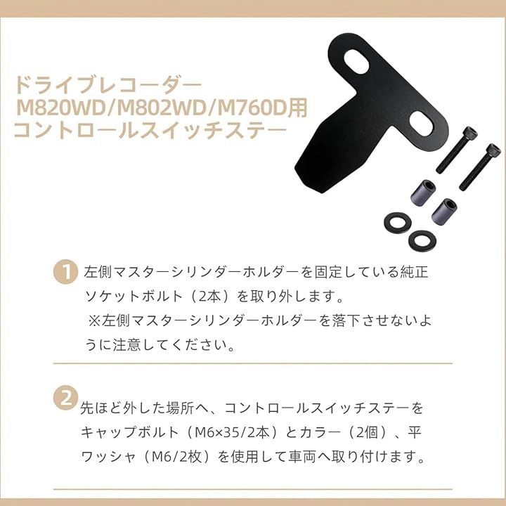 「明確な取り付け手順」 1.左側マスターシリンダーホルダーの純正ボルト2本を取り外し(落下注意) 2.コントロールスイッチステーを付属品で取り付け の2ステップで完了します。
