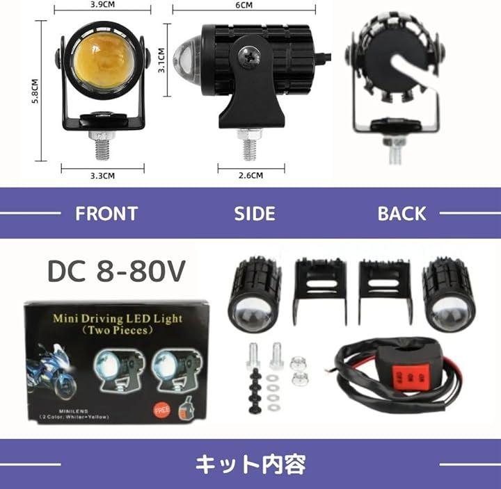 「仕様詳細」動作電圧:12V-24V/消費電力:10W(片側)/材質:アルミ合金/LEDチップ:3570CSP/色温度:6000K/防水性能:IP67。