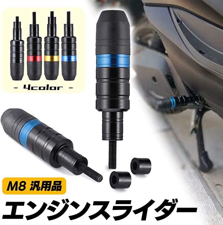 ・「本体サイズ」 約11.8cmx2.8cm (長さはワッシャで可変) 「ボルト」 M8 (8mm) 「仕様」 エンジンマウントに共締めで装着 「素材」 ABS+アルミベース 「付属数」 2本セット 「カラー」 ・ブラックxブラック ・ブラックxレッド ・ブラックxブルー ・ブラックxゴールド