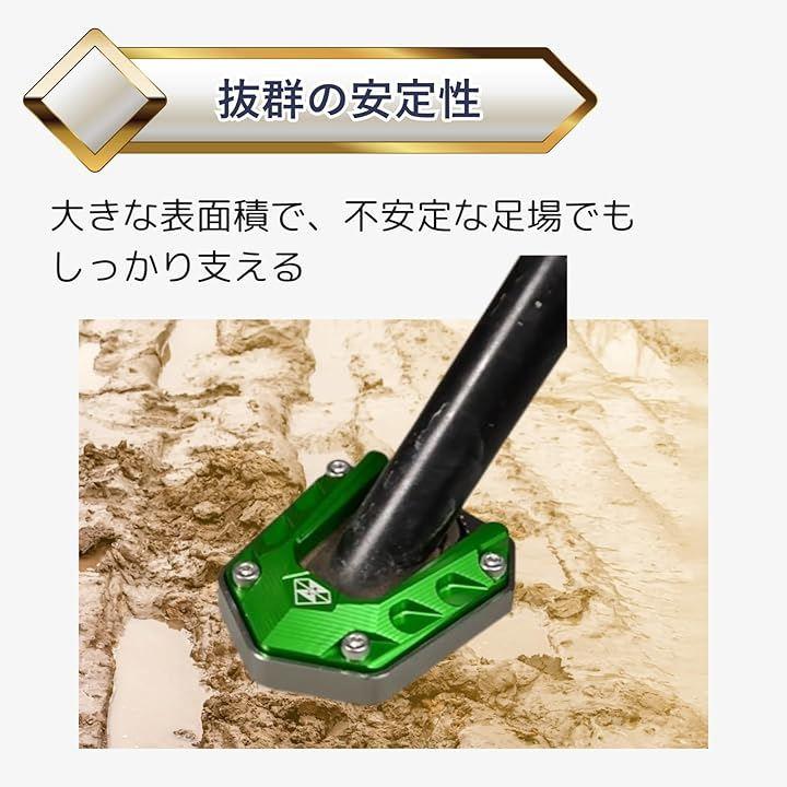 「安定性向上」接地面積を拡大し、柔らかい地面でもバイクの安定した駐車が可能。