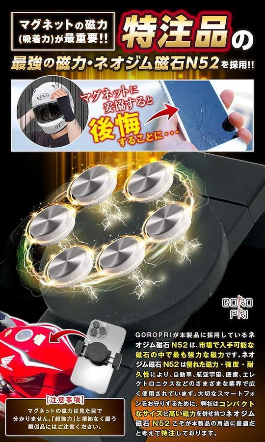 「バイク用品の新定番」今話題のマグネット式スマホホルダーが皆様の期待にお応えしてお求めやすい価格で新登場!!(*特許庁のプラットフォームで調査済み)超強力なマグネットで燃料タンクにマウントするコンパクトなバイク用スマホホルダーです「愛車の見た目にこだわりのある」アメリカン、チョッパー、ネイキッド、カフェレーサーなどのバイクオーナー様には強くお勧めしたい商品です!!