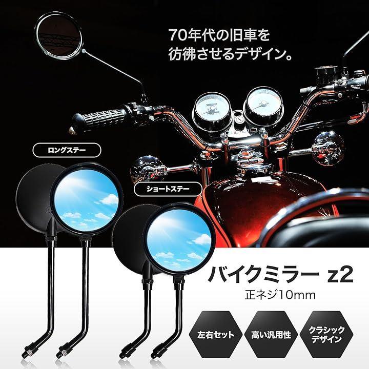 バイク ミラー z2 タイプ 10mm 左右 セット ラウンド 丸 型 旧車 カスタム レトロ パーツ 汎用 サイド 黒 ブラック