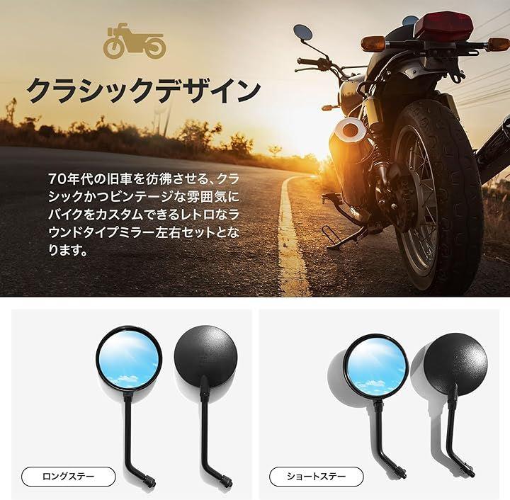 特徴:70年代の旧車を彷彿させるクラシックかつビンテージな雰囲気にバイクをカスタムできるレトロなラウンド タイプ ミラー 左右 セット となります。