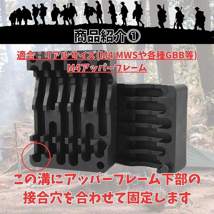 「技術仕様」素材: ポリマー 対応モデル: M4、AR15、M16等 セット内容: バイスブロック1個or2個セット サイズ:約115x85x53mm 重量約400g 説明書は付属していません。