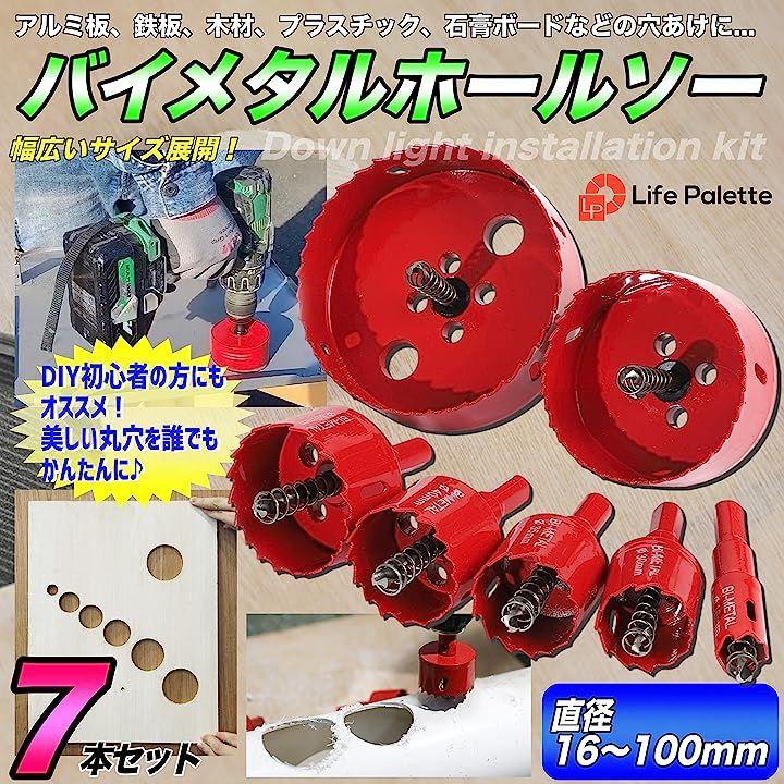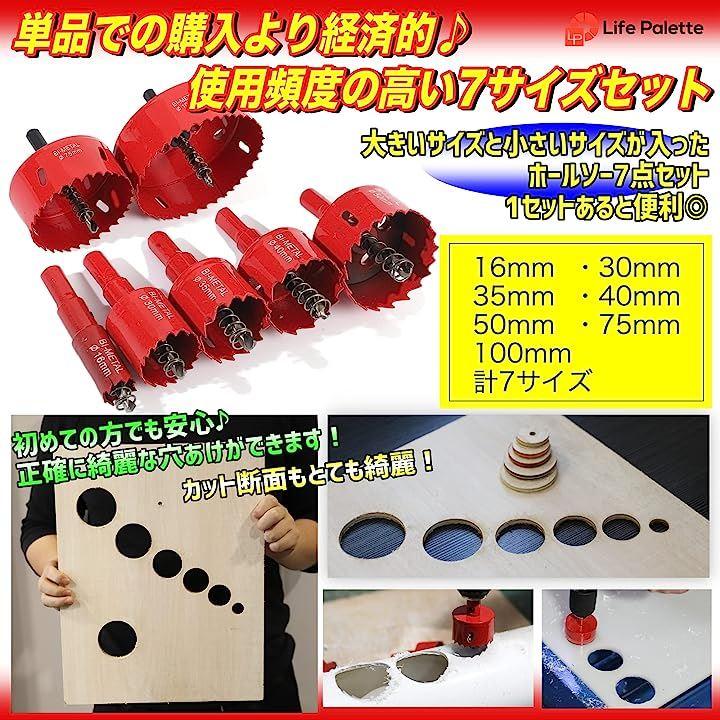 バイメタルホールソー 直径16~100mm 増量7本セット 16mm 30mm 35mm 40mm 50mm 75mm 100mm