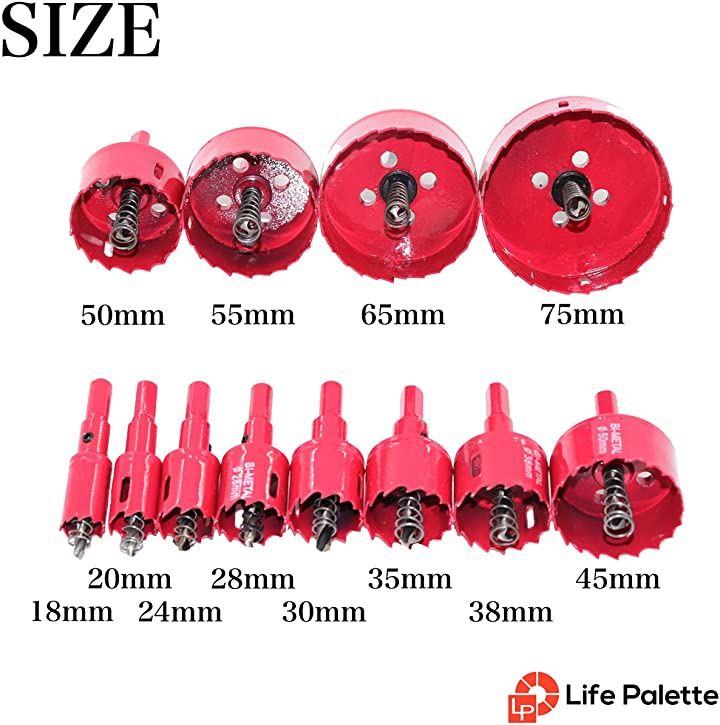 ・バイメタルホールソー 直径18~75mm 12本セット 18mm 20mm 24mm 28mm 30mm 35mm 38mm 45mm 50mm 55mm 65mm 75mm