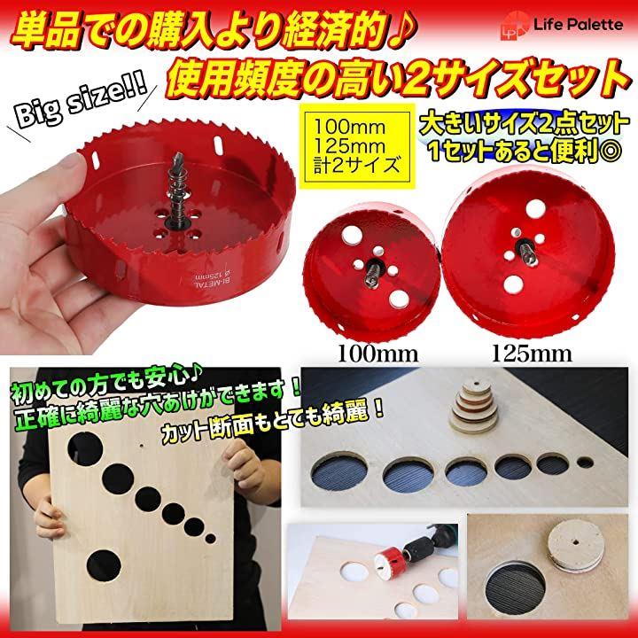 ・「大きいサイズを激選。100mm・125mm 大型サイズのホールソー2本セット」使用頻度の高い直径100mm・125mmの大型ホールソーを各1本2本セットにしました。