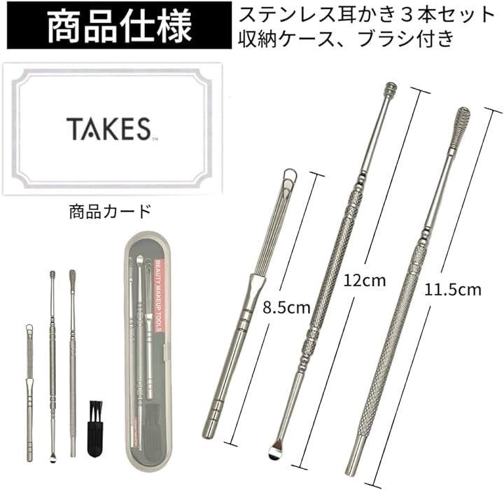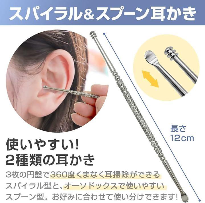 「セット内容」3連ループ耳かき(ステンレス製)スパイラル&スプーン耳かき(ステンレス製)スプリング耳かき(ステンレス製)専用ケース、お掃除ブラシ、商品カード付き