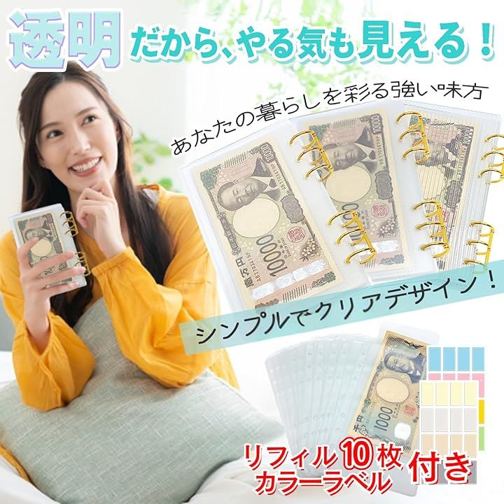 貯金封筒として使える透明ポケットで、日々のお金管理が驚くほど楽に。
