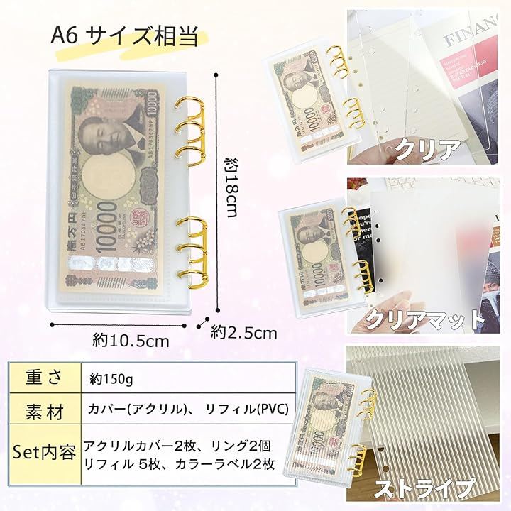 貯金封筒として使える透明ポケットで、日々のお金管理が驚くほど楽に。