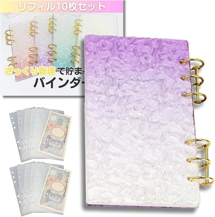 バインダー貯金 韓国 アクリルバインダー A6 お金管理 ファイル 貯金ファイル 家計管理 封筒貯金 貯金封筒 6穴