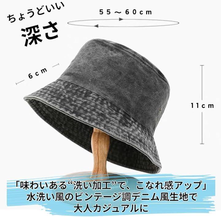 水洗い風加工で仕上げたヴィンテージ調のデザインが魅力のバケットハット。