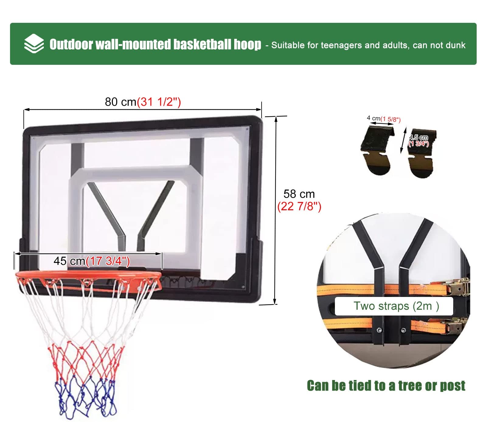 すべてのバスケットボールファンの夢の仲間であり、大人だけでなく子供にもいつでもどこでもバスケットボールの楽しさを提供します! あなたの庭やその他の可能な設定で、友達や子供たちとバスケットボールの試合を楽しんでください!仕様:バックボードのサイズ: 80cm×58cm (31 1/2インチ×22 7/8インチ)。フープの直径: 45 cm (17 3/4")該当する人:子供、ティーン/大人特徴:-厚みのあるスチールリング、安定性と耐久性があり、屋内および屋外での使用に非常に適しています。- フープは色あせしにくい高温焼き付け塗料で処理されています。- エッジ保護設計、損傷しにくく、より耐久性があります。- バスケットボールを通して楽しみ、友情を育む健康的なライフスタイル!- バスケットボールが好きな子供や家族への最高のホリデーギフト。パッケージ内容:1×バスケットボールフープ(取り付け用アクセサリーを含む)暖かいリマインダー:- 手作業で計測しているため、実際のサイズにより1~2cmの誤差が生じる場合があります。- 一部のモニターや照明の違いにより、写真と実物の色が若干異なる場合があります。良いサービス:- 製品についてご不明な点がございましたら、いつでもご連絡ください。24時間のカスタマーサービスを提供しています。