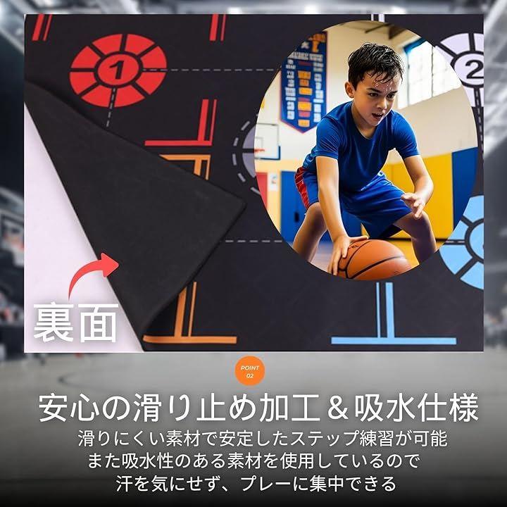 「初心者から上級者まで。効果的なトレーニングをサポート」このバスケットボールマットは、ドリブル・ステップ・ポジショニングの練習に最適な設計。