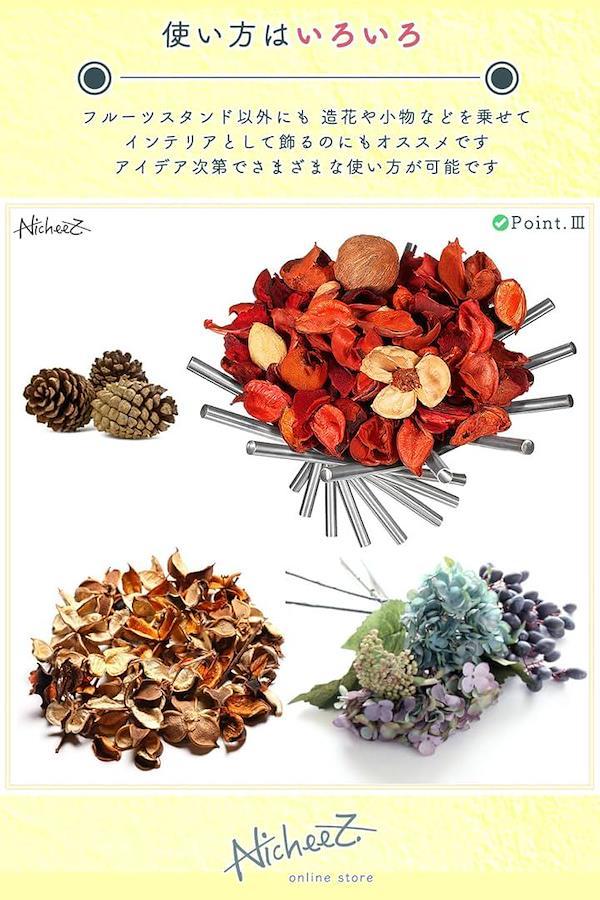 「使い方はいろいろ」フルーツスタンド以外にも、造花や小物などを乗せてインテリアとして飾るのにもオススメです。