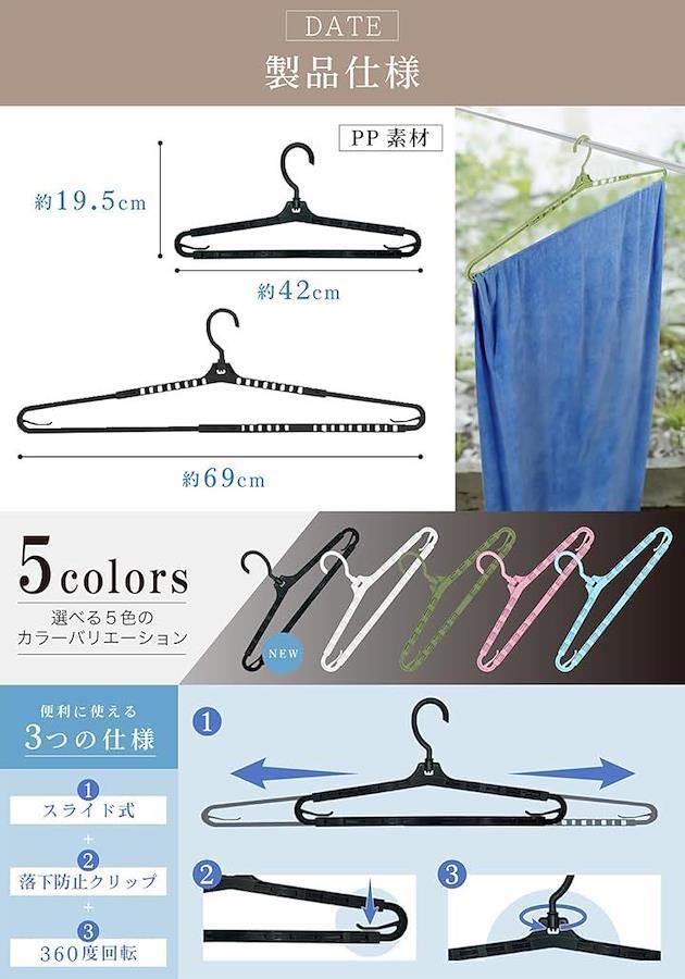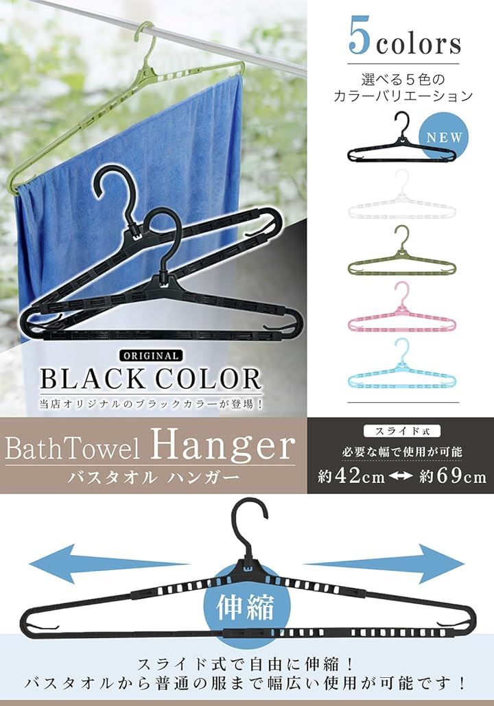 「素材」丈夫なプラスチック素材を使用して、紫外線に強く、変形しにくい、長期的にお使いいただけるような設計のバスタオル洗濯ハンガーです。