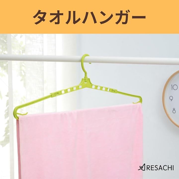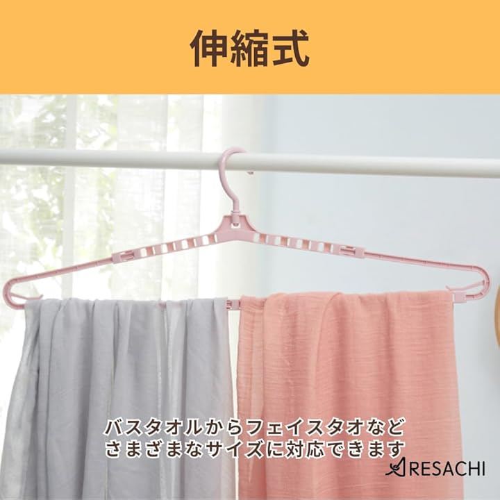 「伸縮式」ハンガーの幅を調整できるので、バスタオルからフェイスタオルなど、さまざまなサイズに対応できます。