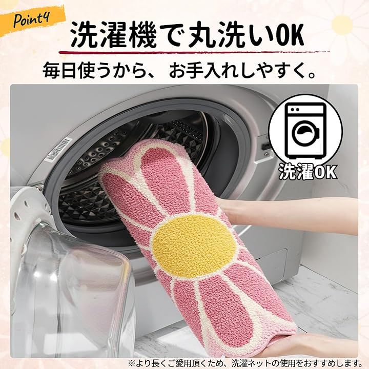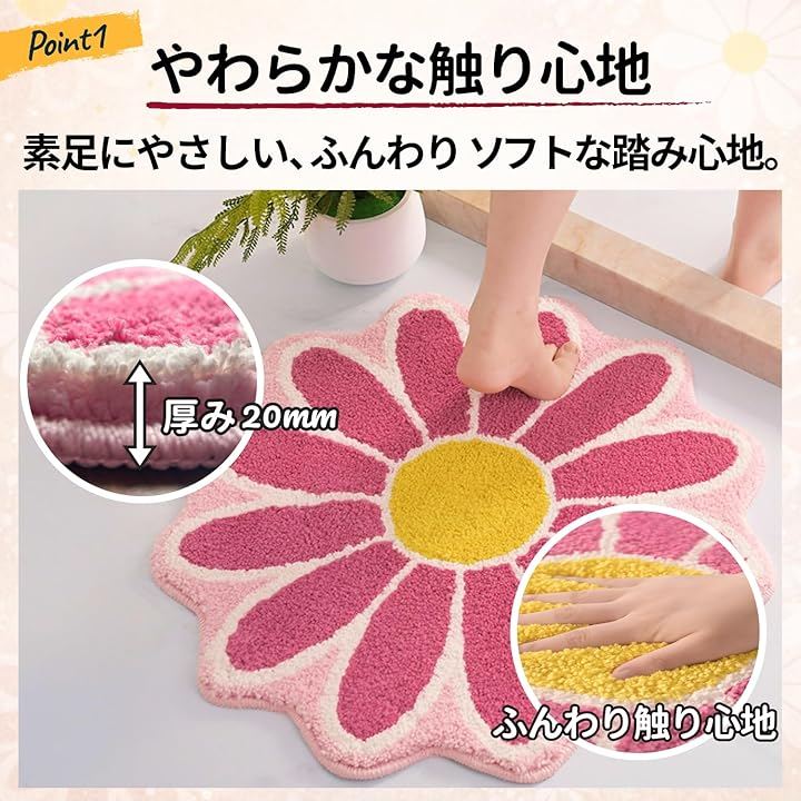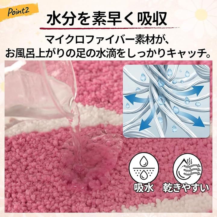 「吸水性」水分をしっかり吸収し、入浴後や洗面時の足元を快適に保ちます。