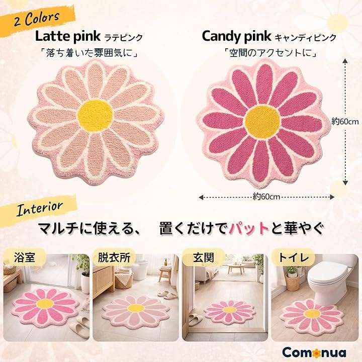 * 60x60cmの大判花形デザイン バスルーム、洗面所、玄関、部屋などに。