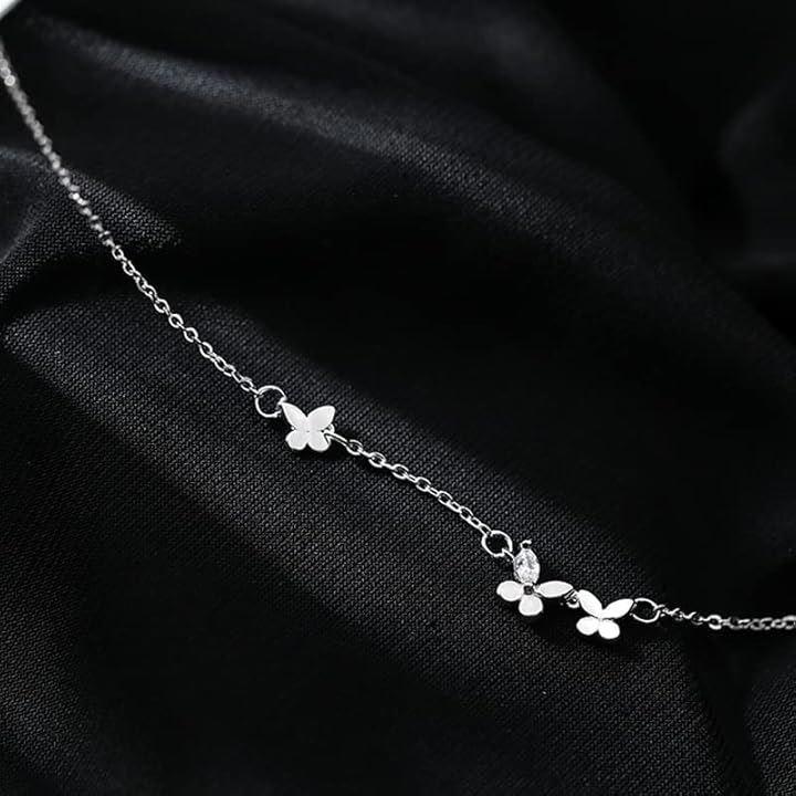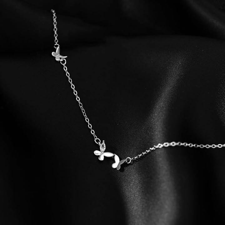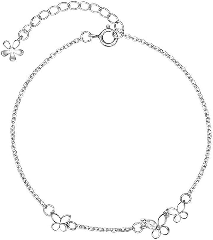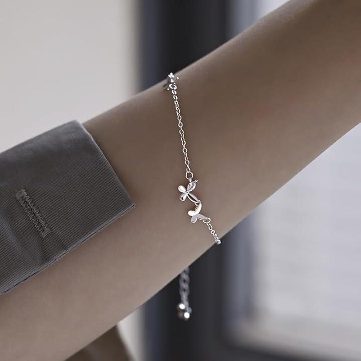 「可憐にきらめく蝶と花のモチーフ」繊細な蝶と小さな花々が織りなす、女性らしさあふれるブレスレット。
