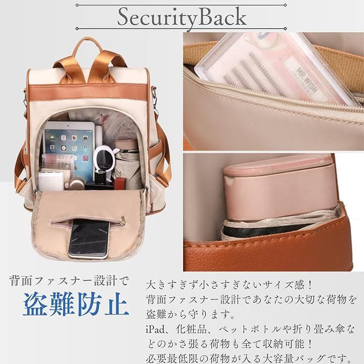 「背面ファスナーで盗難防止」リュックの背面には独立した大きなファスナーポケットが付いていますので、気づかないうちに他人にジッパーを開けられる心配はなく、貴重品の収納に最適です。