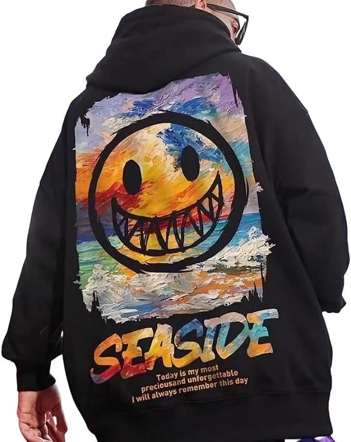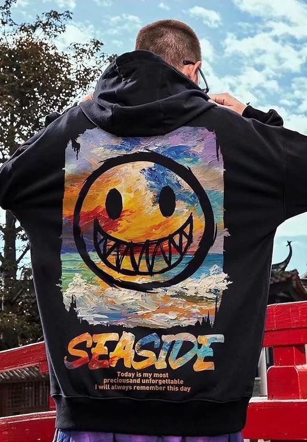 大きなバッグプリントが目を惹くプルパーカーはややワイドな身幅&ドロップショルダーでリラックス感溢れるビッグシルエット仕様