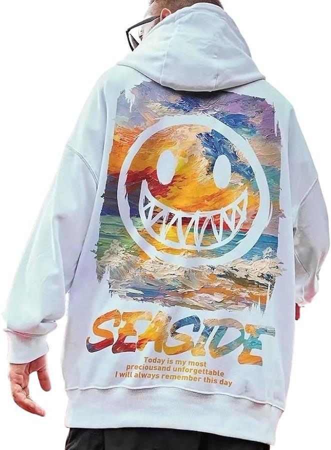 大きなバッグプリントが目を惹くプルパーカーはややワイドな身幅&ドロップショルダーでリラックス感溢れるビッグシルエット仕様