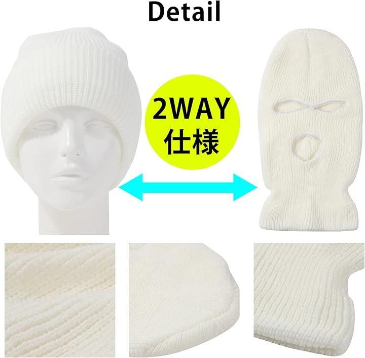 目出し帽として、顔全体を覆う使い方の他に、首元をクルクル巻けば、ニットキャップとして使うこともできます。