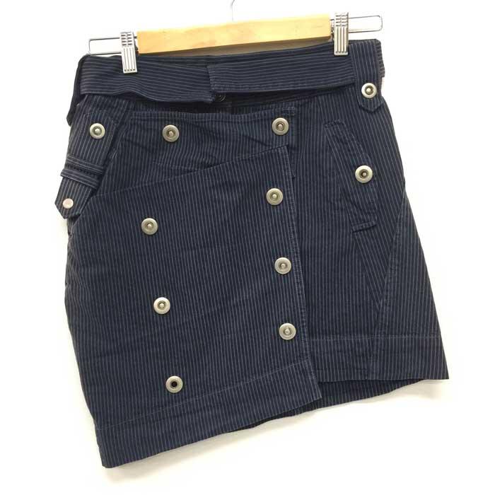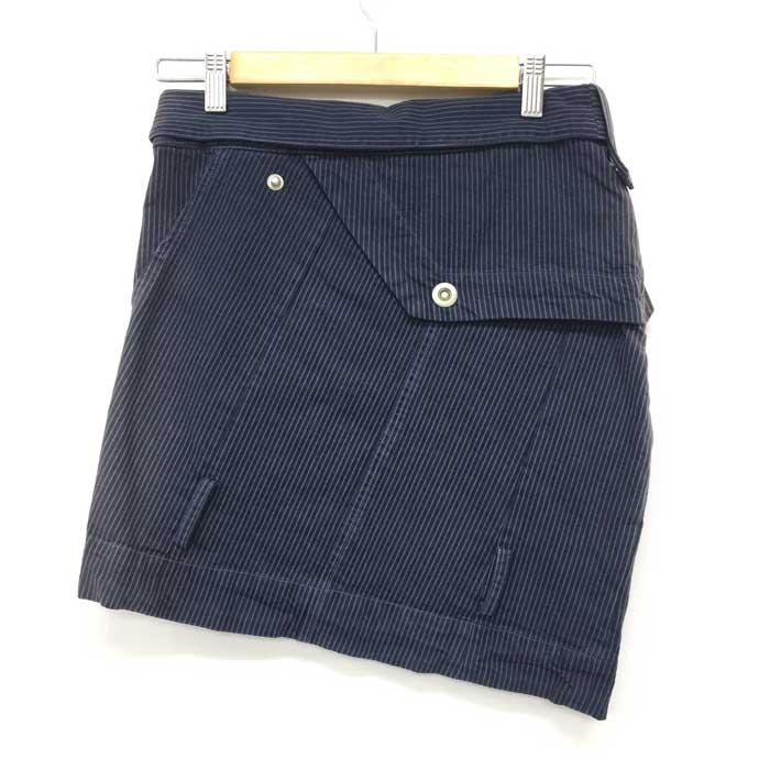 【管理番号】002012w【ブランド名】 Barak【アイテム】 スカート【サイズ】 2 平置採寸(ウエスト:約34.5cm総丈:約44cm)【色・柄】 ネイビー ストライプ柄【素材】 綿100%【付属品】 タグ【外観ランク】 Bランク【商品補足説明】 両サイドが日焼けのため色落ちしています。