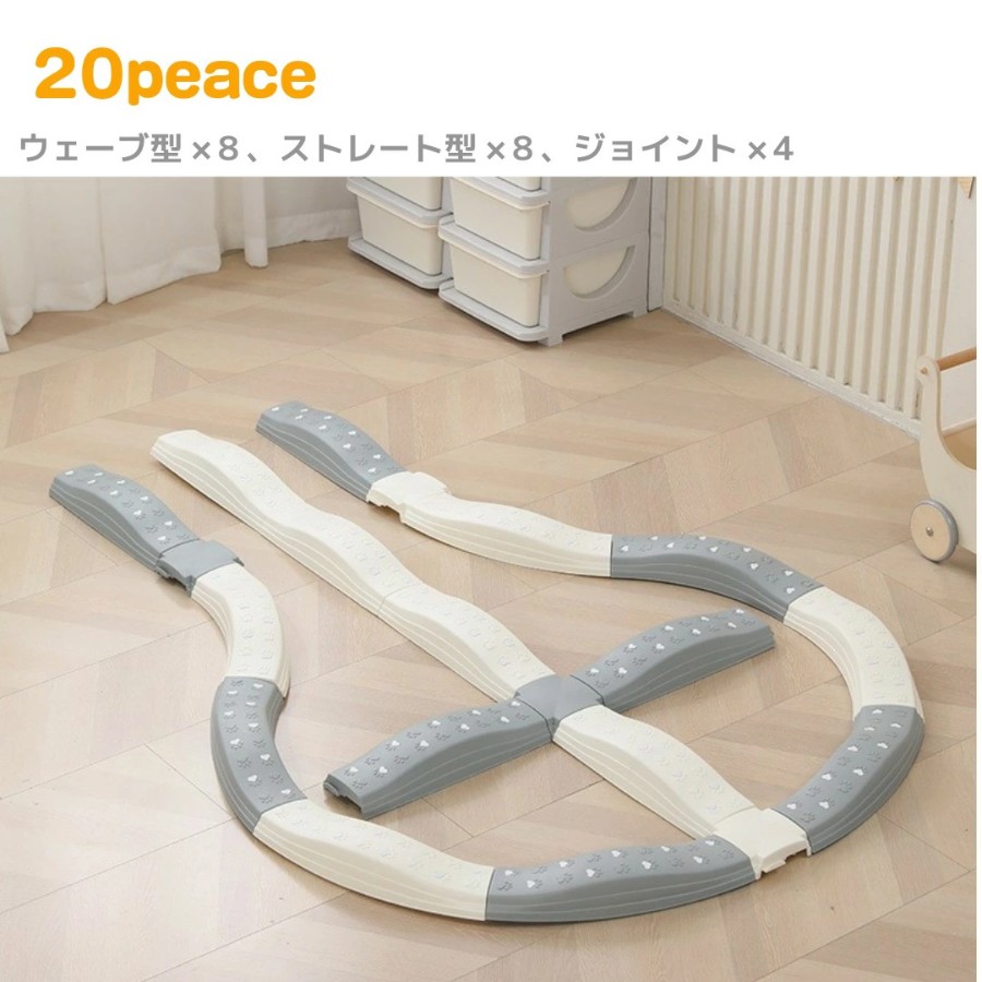 バランスストーン 20ピース バランスビーム 室内遊具 滑り止め付き ウェーブ ストレート ジョイント 組み合わせ自由 体幹 バランス感覚 運動遊び キッズ 子供 おうち 運動