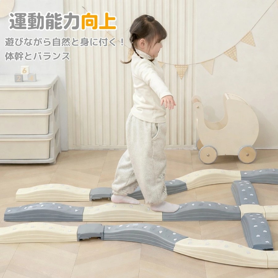 バランスストーン バランスビーム 室内遊具 室内遊び 運動遊び おうち遊び 体幹 バランス感覚 トレーニング 子供 キッズ 幼児 小学生 親子遊び 知育 玩具 おもちゃ アスレチック コース 組み替え 滑り止め 20ピース ウェーブ ストレート ジョイント 雨の日 プレゼント