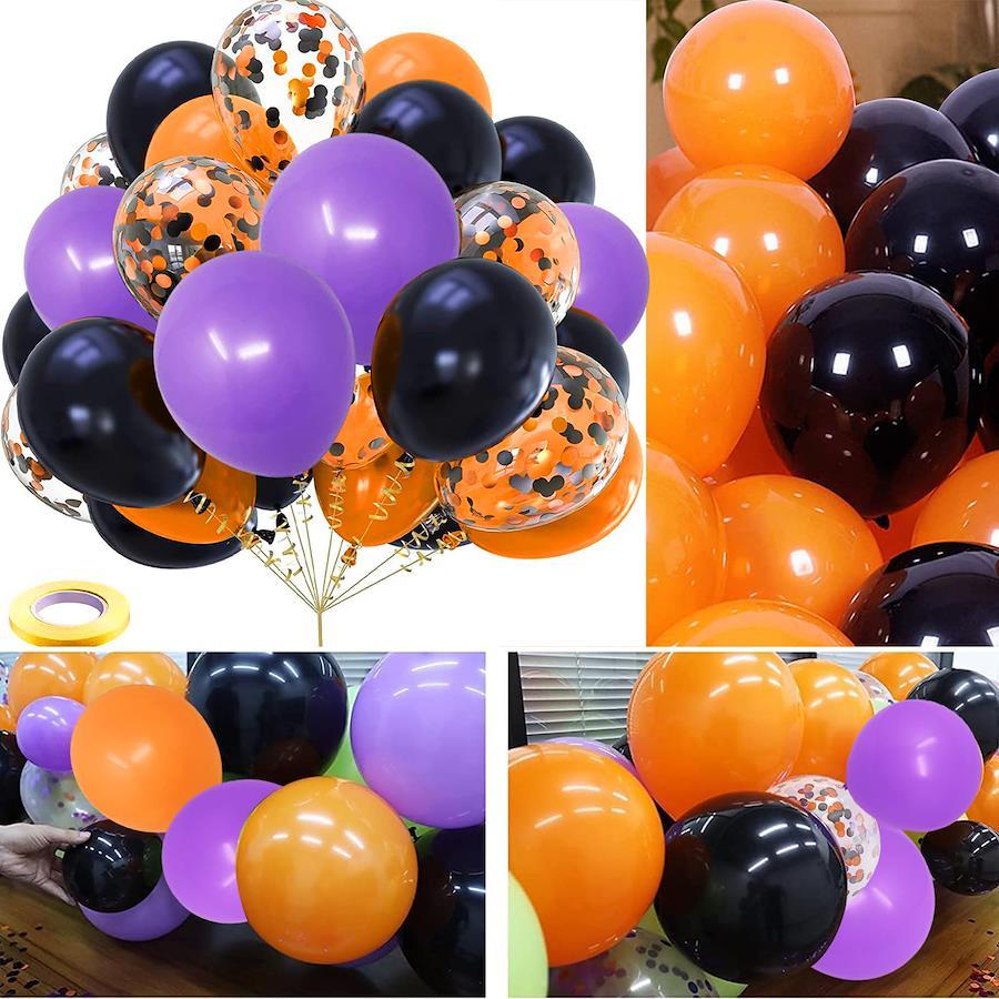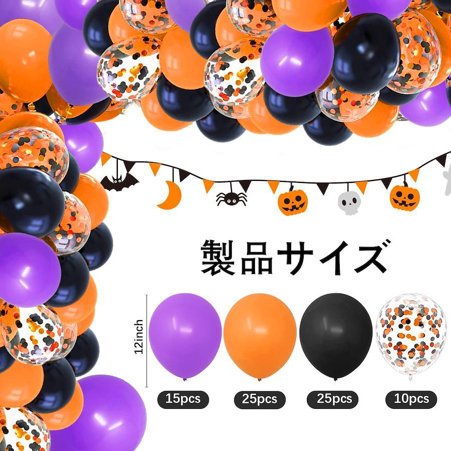 【商品セット75pcs】黒25個+オレンジ25個+スパンコール10個+紫15個風船。75ピースのバルーンは、ハロウィーンにちなんだデザイン!【プレミアムバルーン】高級感のある鮮やかな色のバルーンで、ハロウィンシーンに使うと高級感が出ます。ハロウィンやクリスマスの飾りとしても使え、色の組み合わせもハロウィンの怖い雰囲気にぴったり!【アクセサリ】このパッケージには、多くの異なる色の装飾が含まれています、あなたはあなたの友人や家族と一緒に任意のパーティーを飾ることができます、この色の組み合わせは、バースデー・パーティーやハロウィーン・イベントを開催する際に、あなたを輝かせてくれること間違いなしだ!【多用途】誕生日パーティー、記念日、ガーデンディナー、ハロウィーン、クリスマス、出産祝い、特別なお祭りで、部屋の壁、窓、宴会テーブルなどを飾るのに使用できます。 室内はもちろん、お庭やアウトドアでのパーティーやイベントにもご利用いただけます。 パーティー後のお部屋の飾りとしてもお使いいただけます。6歳以上のお子様にお勧め風船の色はディスプレイの関係で多少異なる場合がありますので、ご了承ください。【免責事項】メーカーによる商品リニューアルに伴いパッケージ(内容量も含む)変更が行われた場合、新パッケージでお届け致します事ご了承願います。