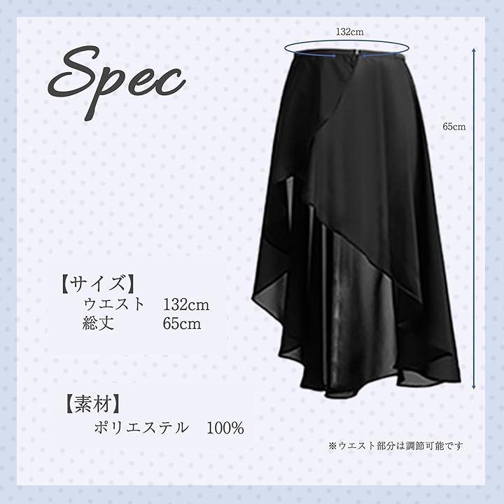 巻きスカートのウエスト部分の巾は、約132cmで、ウエストサイズ60cm以下の方から95cmくらいの方までご使用いただけます。