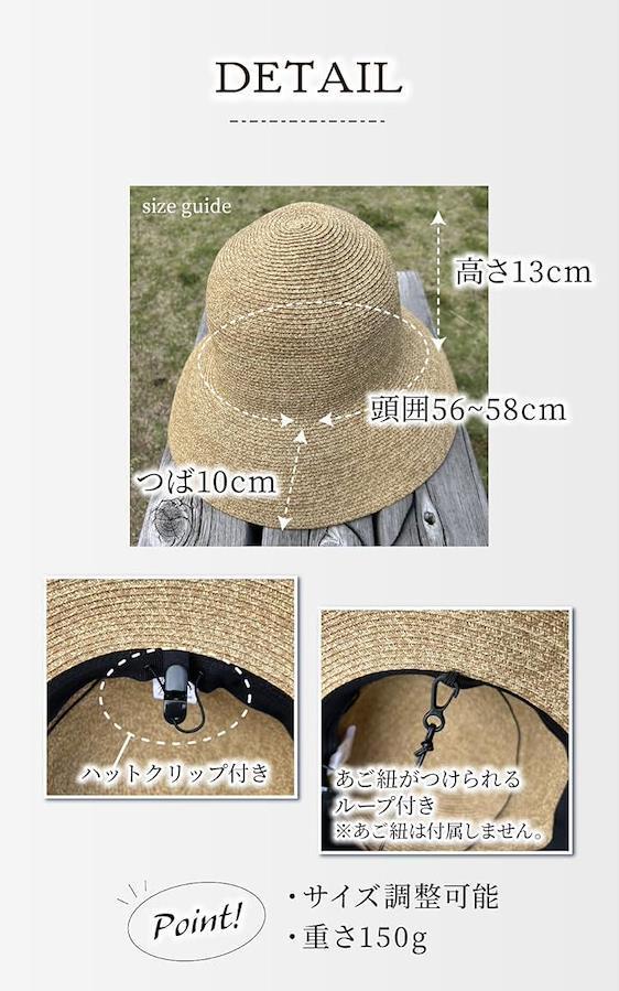 「ハットクリップとあご紐付きでサイズ調整が可能」帽子を急な強風から保護するために設計されています。
