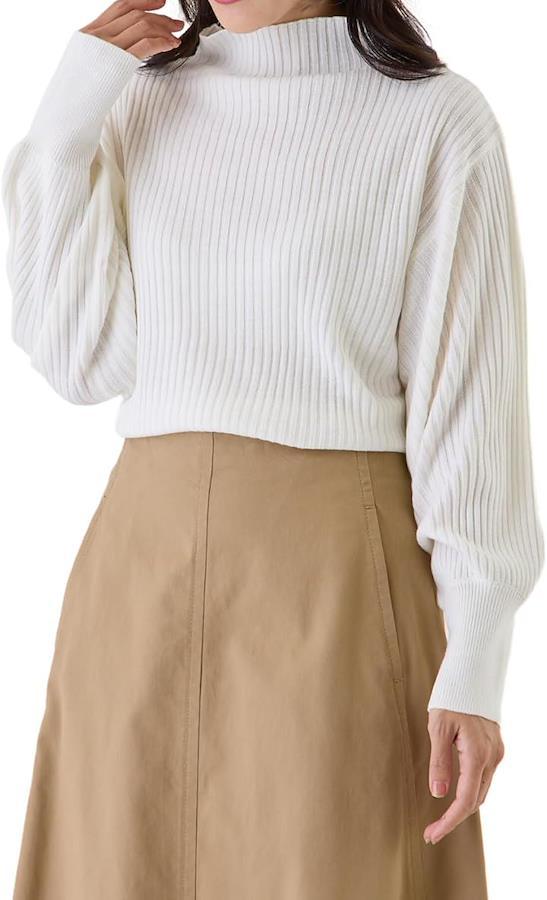 「緩めのハイネック」 締め付けのないハイネックデザインは、大人の落ち着きと品格を感じさせます。