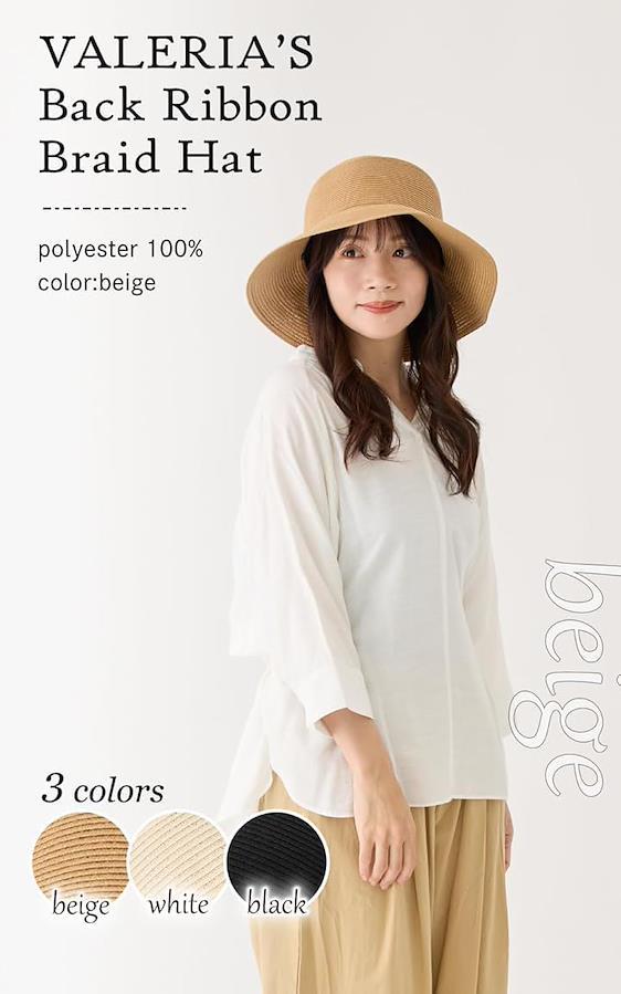 「女性らしさと優雅さを演出するバックリボンデザイン」バックリボンは帽子の後ろに装飾されており、ハット全体のデザインに特別なアクセントを加えてくれます。