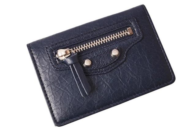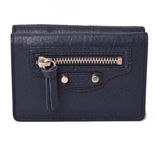 バレンシアガより、ファスナー式折財布です。独特のシワ加工を施した手触りのよいレザーで、高級感があります。人気のクラシックモデルに、スタッズが印象的です。デザインだけではなく、機能性の高いファスナー付のお財布で、使いやすさに定評があります。