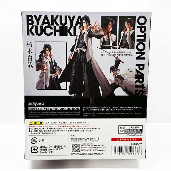 「S.H.Figuarts 朽木白哉」には、計4種の豊富な交換用表情パーツが付属している他、始解「千本桜」を再現出来る刀身無しの持ち手パーツも付属しており、様々なシーンを再現することが可能なセット内容。