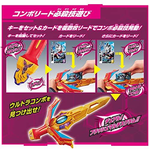 また、ウルトラディメンションカード&ガッツハイパーキーと互換するW連動システムを搭載! 付属のウルトラデュアルキーをセットすると必殺技モードが起動し、カードをリードして必殺技を発動!