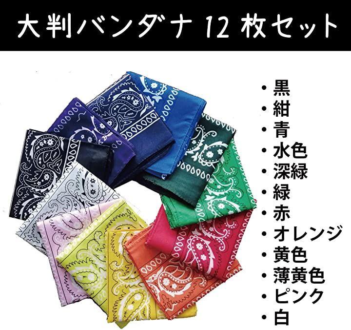 商品内容:53cmx53cm大判サイズ綿バンダナ12枚入り(12色)